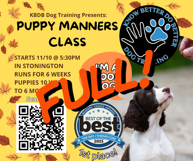 KBDB Group Training is focused on small groups of no more than 8 dogs, so there is enough time to make sure your dog gets the attention they need during classes!